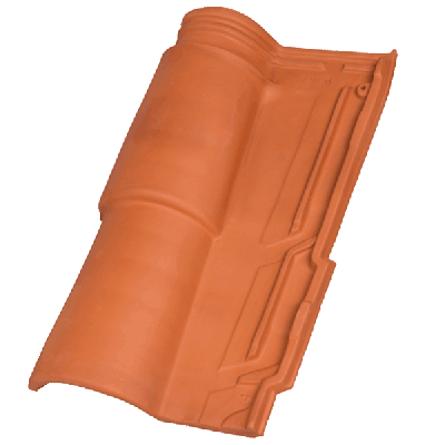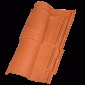 Exclusive one piece high profile interlocking roof tile design that combines the curved profile as a cover-pan result, its small deviations both false angle section as rounded decks without cuts, thanks to its lateral interlocking area.